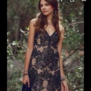 Altar’d State Kayann Sequin and Black Lace Mini Cocktail Dress