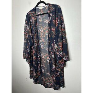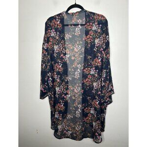 Altar'd State Kimono Womens Navy Blue Floral Print Open Front Long Size Large