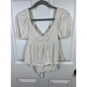 Altar'd State Kinsley Babydoll Top Tie Back White Brushed Cotton Gauzy Medium
