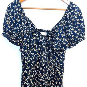 Altar’d State | Linnet Ditzy Floral Print Midi Dress in Navy | Size Medium