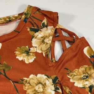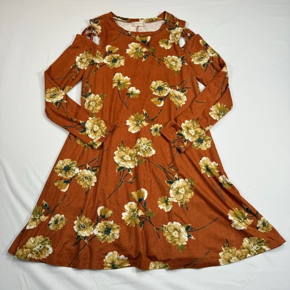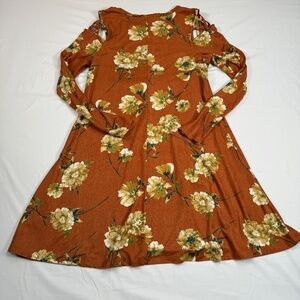 Altar'd State Long Sleeve Floral Midi Dress Womens Size Small Rust Cold Shoulder