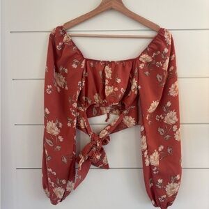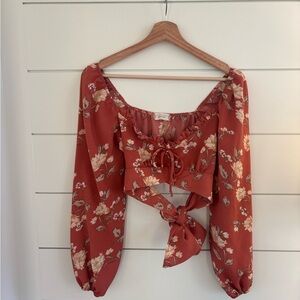 Altar’d State Long Sleeve Floral Rust Top