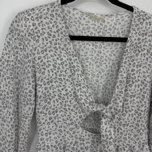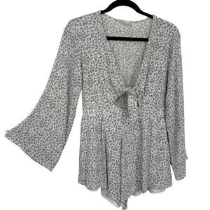 Altar'd State Long Sleeve Romper Shorts Size Medium Light Animal Crinkle Knit Peekaboo tie waist, lined shorts