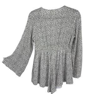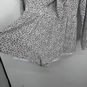Altar'd State Long Sleeve Romper Shorts Size Medium Light Animal Crinkle Knit