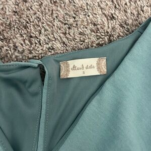 Blue/green Altar’d state long sleeve romper with ruffle shorts.