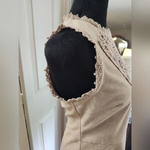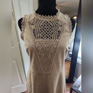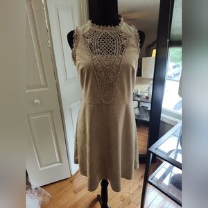 Altar'd State Faux Suede Dress Crochet Detail M -Taupe. -Overlay style with crochet detail. -NWOT. New without tags attached. -Zipper closure in the back. Pit to pit 17", waist 15", 35" length from shoulder to hem. Fits more like a small.