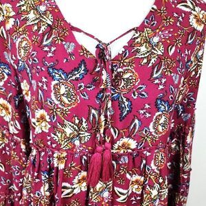 Altar'd State Magenta Floral Puff Sleeve Open Back Tie Front Peasant Dress S