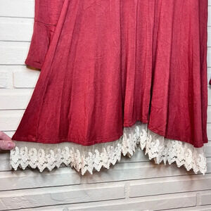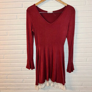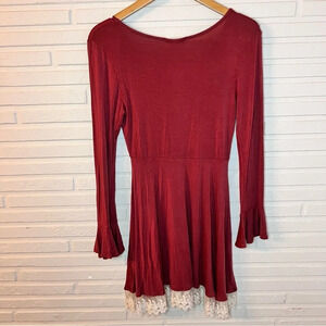 Altar’d State Maroon Bell Sleeve Lace Trim Bohemian Dress , Women’s Size Large