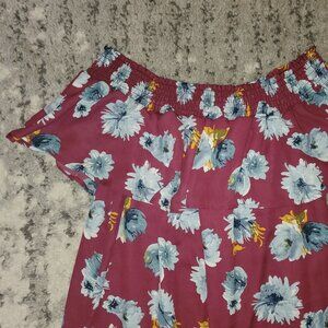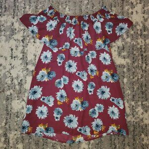 Altar'd State Maroon Floral Off the Shoulder Mini Dress