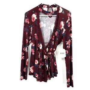 NWT Altar'd State maroon floral wrap v-neck blouse. NO TRADES.
