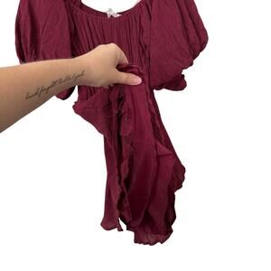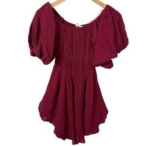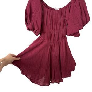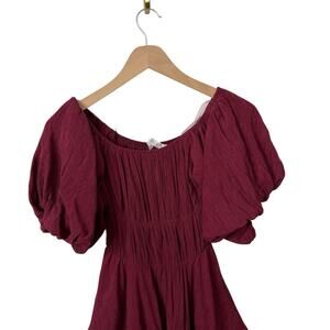Altar'd State Maroon Peasant Dress Puff Sleeve Mini XS