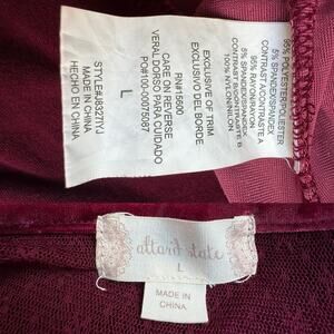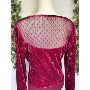 Altar'd State Maroon Sheer Back Long Sleeve Velour Bodysuit Blouse Large
