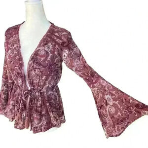 Altar’d State Mauve Purple Paisley Boho Tie-Front Top S