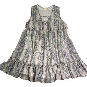 Altar'd State mini swing dress in Womens M, featuring a soft white and blue palette that creates an airy boho, cottage-inspired aesthetic. The flowy silhouette moves beautifully, offering comfort and charm with a gentle soft-girl energy. Delicate detailing and lightweight fabric make it perfect for warm weather, weekend outings, or layered looks in transitional seasons. The relaxed fit feels effortless yet feminine, flattering a variety of body types while keeping the vibe romantic and easy. Ideal for picnics, coastal afternoons, farmers markets, or casual brunch dates, this dress blends carefree style with gentle elegance for a dreamy, wearable look.