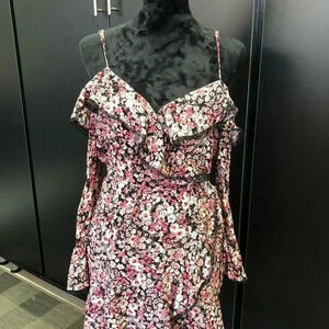 Altar'd State Mini dress,on/off shoulder,elastic waist,v-neck,bell sleeve,Floral