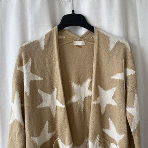 Altar’d State Molly Cardigan Beige White Star Print Open Front Duster Size XS