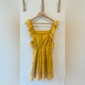 Altar'd State Mustard Yellow Ruffle Strap Mini Dress Size Small