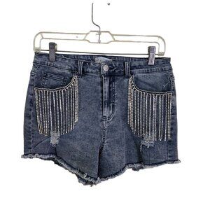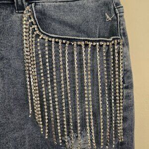 Altar'd State NWOT Rhinestone Fringe Embellished Jean Cutoff Shorts Size S
