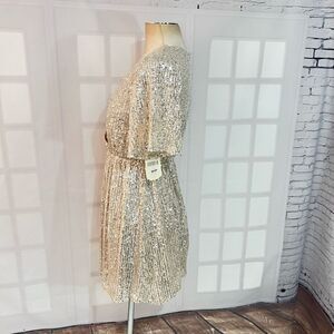 Altar’d’ State NWT Gold Mesh Sequin V-Neck Lined Bridesmaid Mini Dress Medium