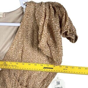 Altard State New With Tags Womens M Animal Print Ruffled Sheer Long Sleeve Tiered Faux Wrap Dress Boho Fully Lined