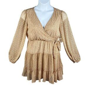 Altard State dress leopard print dress gold wrap dress ruffle hem dress long sleeve dress women's medium dress party dress elegant dress polyester dress wrap style altard state fashion trendy dress chic outfit