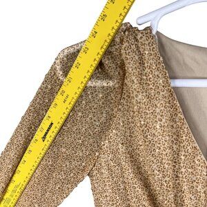 Altard State New With Tags Womens M Animal Print Ruffled Sheer Long Sleeve Tiered Faux Wrap Dress Boho Fully Lined