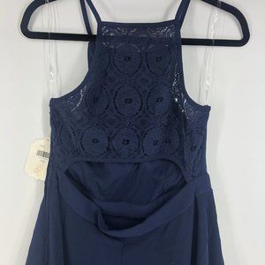 Altar'd State Navy Blue skater Mini Dress Open lace back halter top Size Large