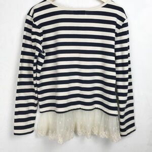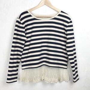 Altar’d State Navy Cream Stripe Lace Scalloped