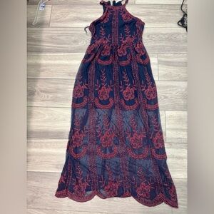 Altar'd State Navy and Red Floral Lace and Embrodisred Dress