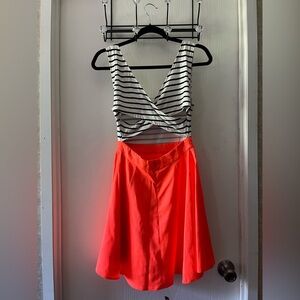 Altar'd State Neon Orange with Black and White Stripes Dress