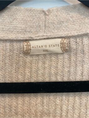 Altar'd State Neutral Beige Button-Front Ribbed Cardigan