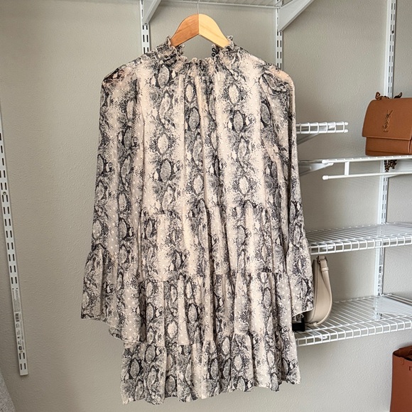 Altar'd State Neutral Snakeskin-Style Ruffled Dress