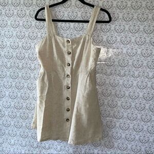 ALTARD STATE Oatmeal Beige Apron Minidress Functional Buttons down the front. Fitted, bodycon dress. 2 pockets in front. Non adjustable straps. Sleeveless. Square neckline. Belt loops no belt included. Rayon blend fabric with rayon lining. Style number HF20E561 (No belt)