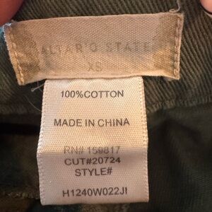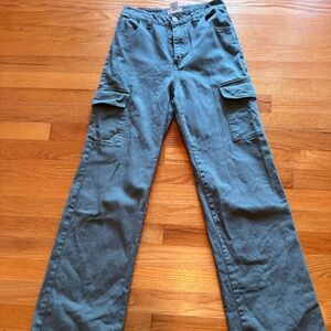 Comfortable olive green cargo pants. Made from 100% cotton. Ideal for everyday wear.