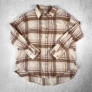 Altar'd State Oversized Brown and Pink Plaid Button-Up Blouse Medium