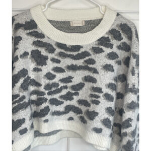 Altar’d State Oversized Cropped Sweater Sz S Boxy Animal Print Ivory Gray Cozy