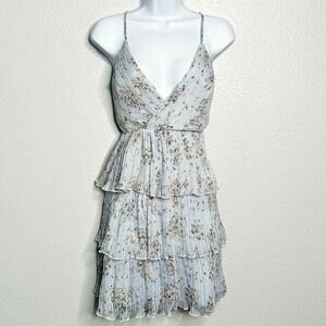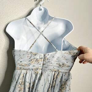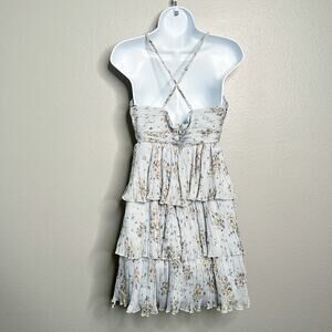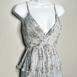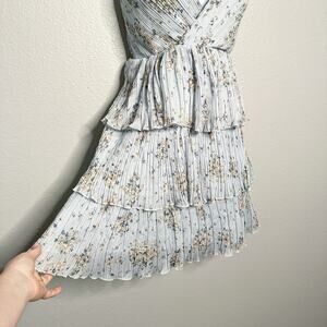 Altar'd State Pale Blue Floral Romantic Surplice Tiered Mini Dress - Size Medium