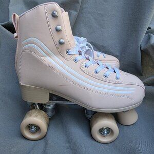 Altar'd State Pale Pink Derby Retro Roller Striped Skates Women's Size 8