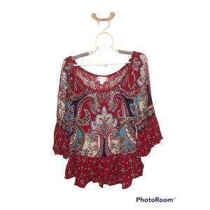 Altar'd State Peplum Top Small Boho Paisley Print Multicolor. Preowned, gently