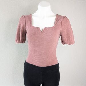 Altar'd State pink bodysuit with stylish puff sleeves, textured fabric and cute square neck. Women's size small.