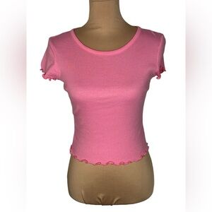 Altar'd State Pink Ruffle Edge Crop Top Medium