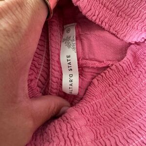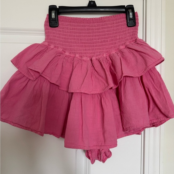 Stylish pink ruffled skort by Altar'd State- smocked waistband for a comfortable fit.