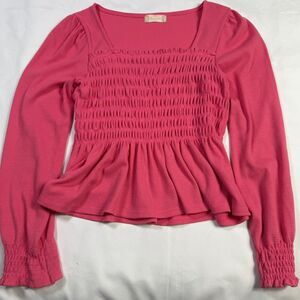 Altar'd State Pink Square Neck Ruffle Top Small Barbie Puff Sleeve Peplum