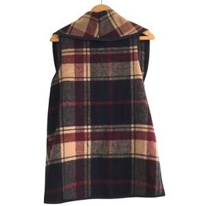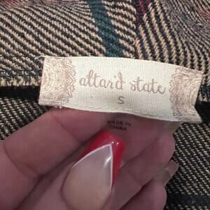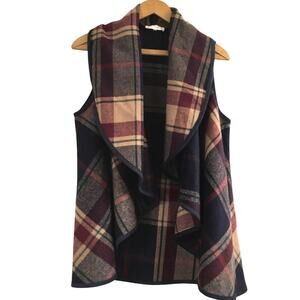 Altar’d State Plaid Vest. Burgundy, navy blue, beige, and green. Beautiful draping to the front. Great for fall and the plaid trend. Wear with boots, flats, jeans or over a dress. Wear as is or belted to up the sophistication. Such a versatile staple! Worn once.