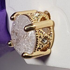 A Simple Oval Pair of Polished Textured Gold Tone White Crystal Stud Earrings add a sophisticated spark to your everyday style. New with tag
