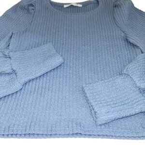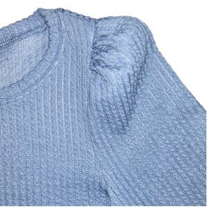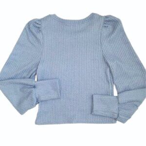 Altar’d State Puff Sleeve Ribbed Sweater Light Blue L Feminine Knit Cozy Top