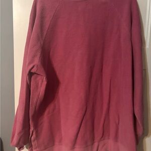 Vibrant raspberry sweater with a cheerful smiley design. Perfect for a fun, casual look.