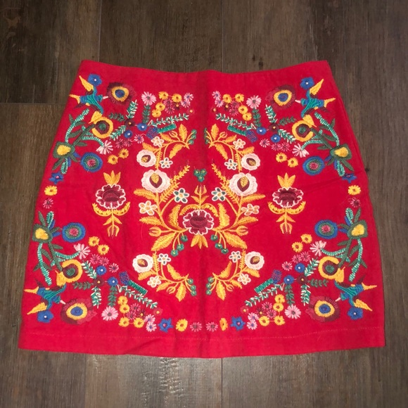 Red, patterned skirt worn once. Zipper on back of skirt.
