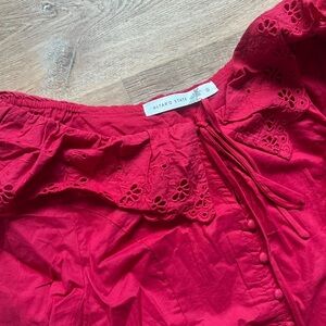 Red embroidered collar button front blouse
