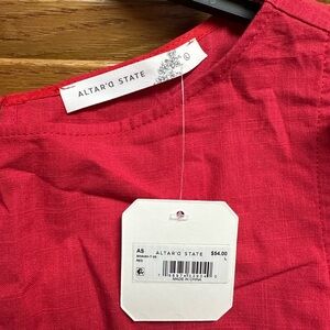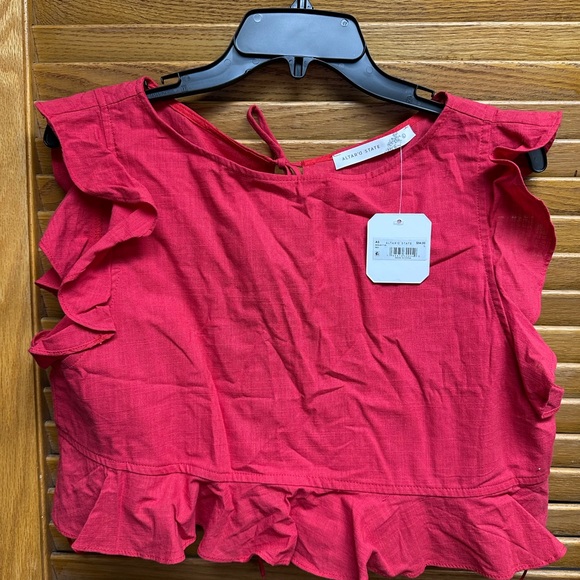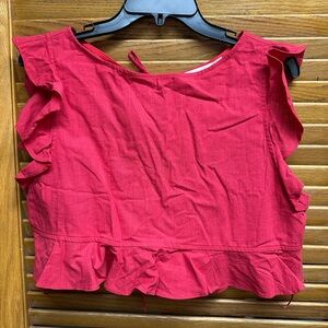 Vibrant red crop top with playful ruffles and tie up the back. Perfect for adding a pop of color.